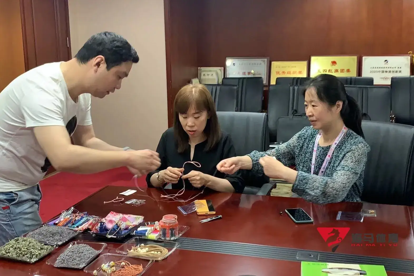 制作前,k8凯发的手工老师首先介绍了端午的习俗以及端午节制作香囊与五彩绳的来历,让大家在活动前了解端午的民俗文化,手工老师将精心准备的有着美好寓意的五色彩绳、色彩绚丽的香包袋以及清香的艾草薰衣草,送到职员手中,携手制作香包和五彩绳。